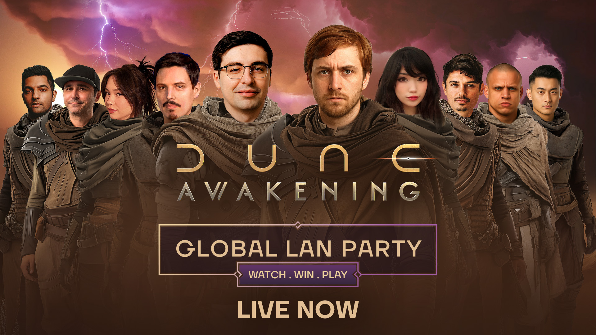Tune in now to the official Dune: Awakening Global LAN Party, streaming live on Twitch and across partnered creator channels. This massive 4-hour broadcast is underway, and you won’t want to miss a moment of the action!